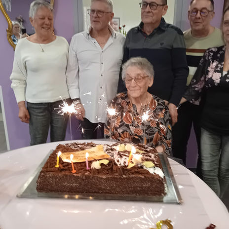 Anniversaire chaleureux à la résidence Les Hirondelles pour Madame Émilienne D., entourée de 6 de ses 7 enfants, de sa famille et de ses 2 meilleures amies.